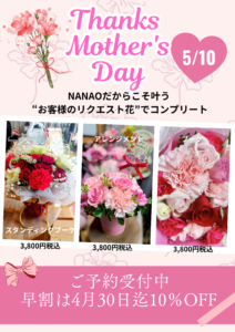 - ※当日のご予約はご希望のお花がない場合もございますので2日前までにご予約ください。